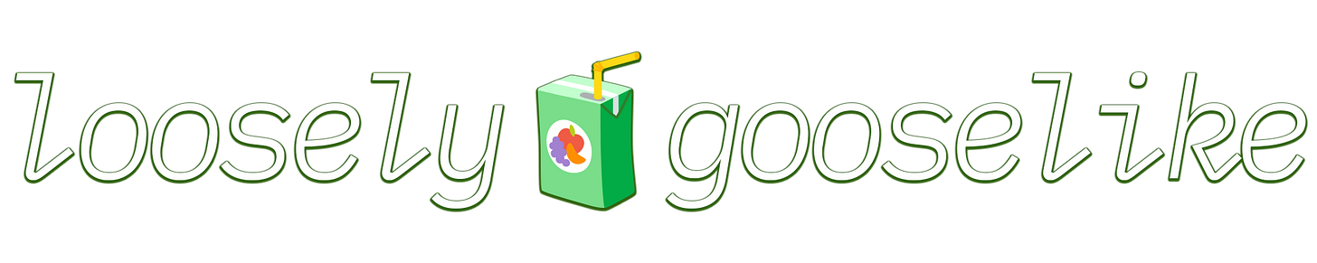 The name “loosely gooselike” is an autocorrect mistake (from “loosey goosey,” typed hastily while trying to make plans). It stayed with me. It felt like a creature, like a way of being. Flexible, fluid, a little silly.